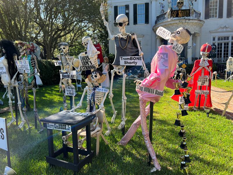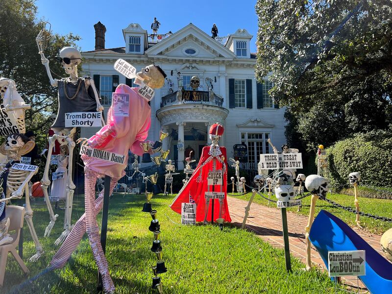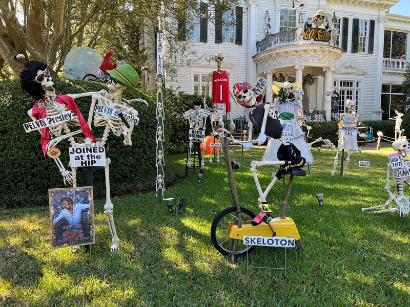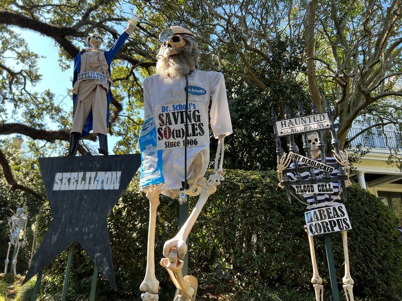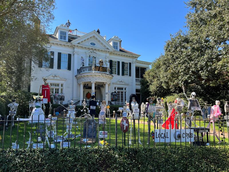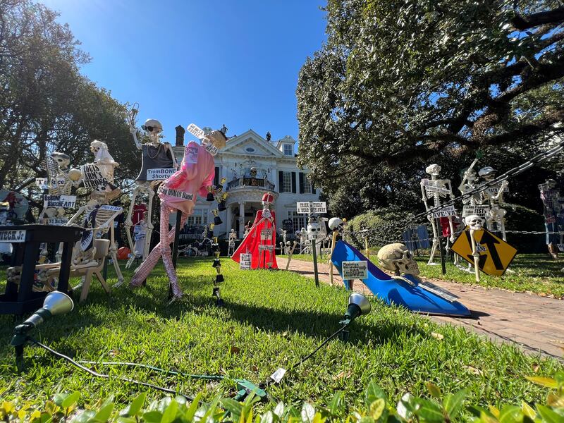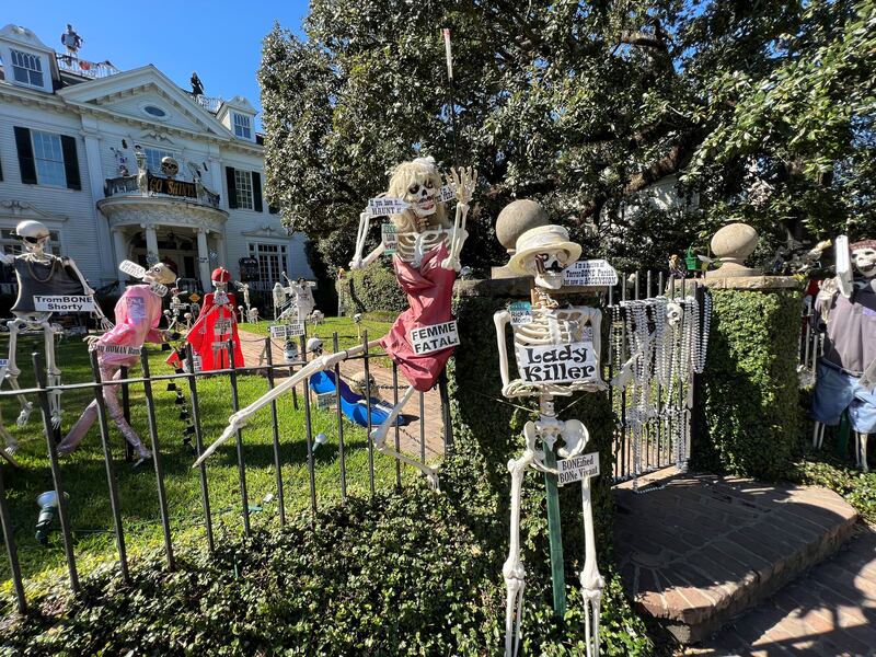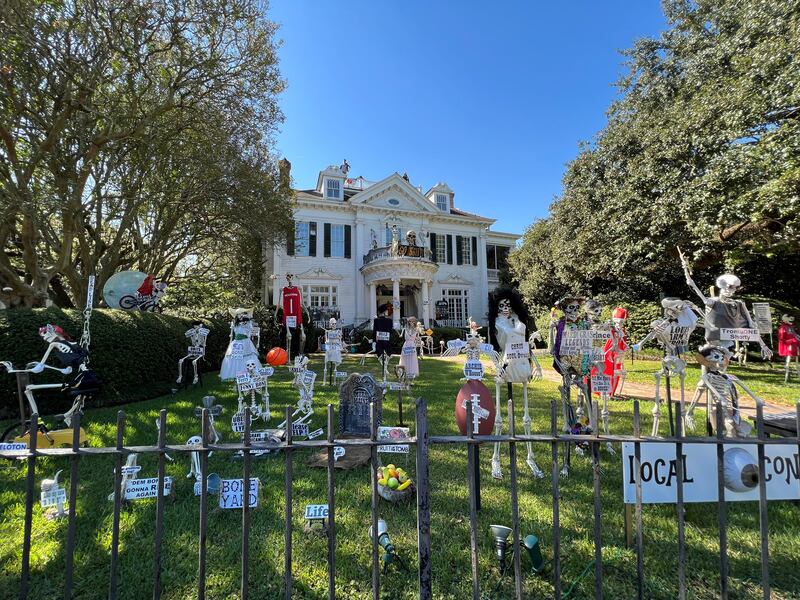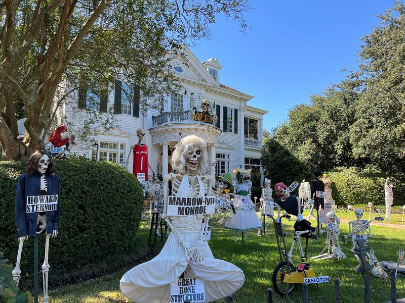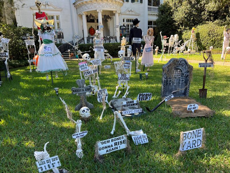 Over the years, the Uptown mansion has grown into a New Orleans Halloween tradition for its yard of funny bones poking fun at trending news topics and pop culture references.